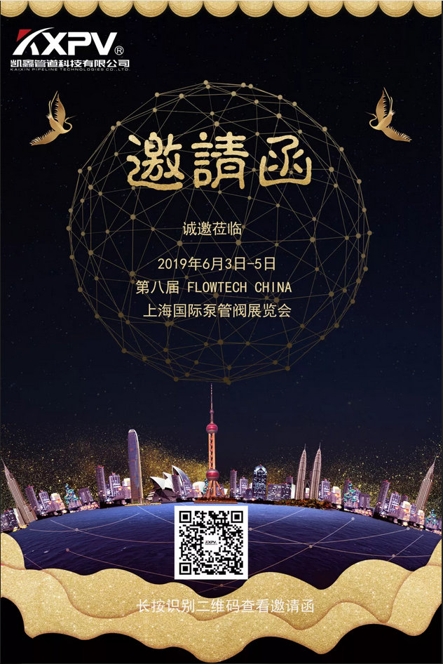 KAIXIN PIPELINE TECHNOLOGIES CO.,LTD. kutsuu sinut osallistumaan 8. Shanghain kansainväliseen pumppu- ja venttiilinäyttelyyn. Toivon, että tämän näyttelyn kautta keskustelemme ja vaihdamme yhdessä, jotta voimme tehdä tiiviimpää yhteistyötä ja yhdessä kehittää markkinoita. Kiitos tuestanne ja ohjeistanne!