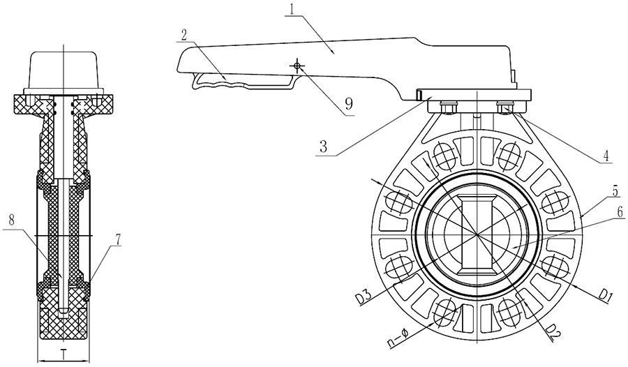 Handle Butterfly Valve Assembly Detail Drawing