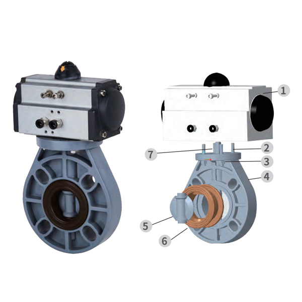 PPH pneumaattinen automaattinen läppäventtiili, keskitiiviste, pehmeä tiiviste, DN40-1000, teollisuus- ja kotitalouksien muoviventtiili, JIS-standardi