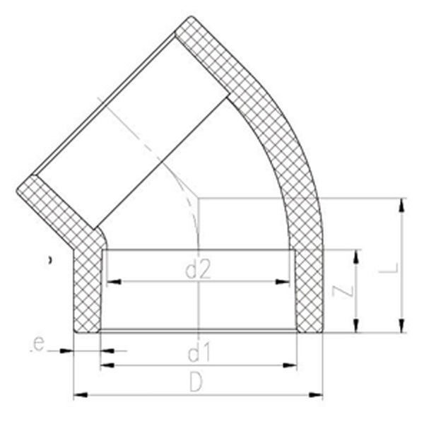 PPH Hot Melt Socket 45° Kulma DN15-100 GB Vakio
