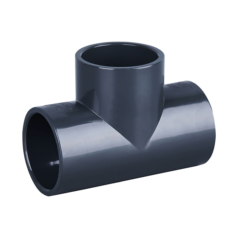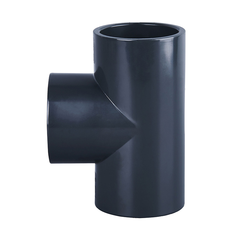 Tehdashinta Tummanharmaa PVC-U Tee samanmuotoinen muoviputkiliitin DN15-DN600 Vesiputkiliitin Suora T-liitin viemäriin ja sanitaatioon